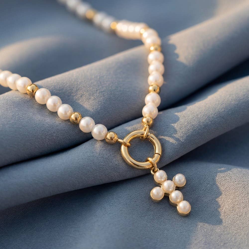Cross Pendant Pearl Necklace