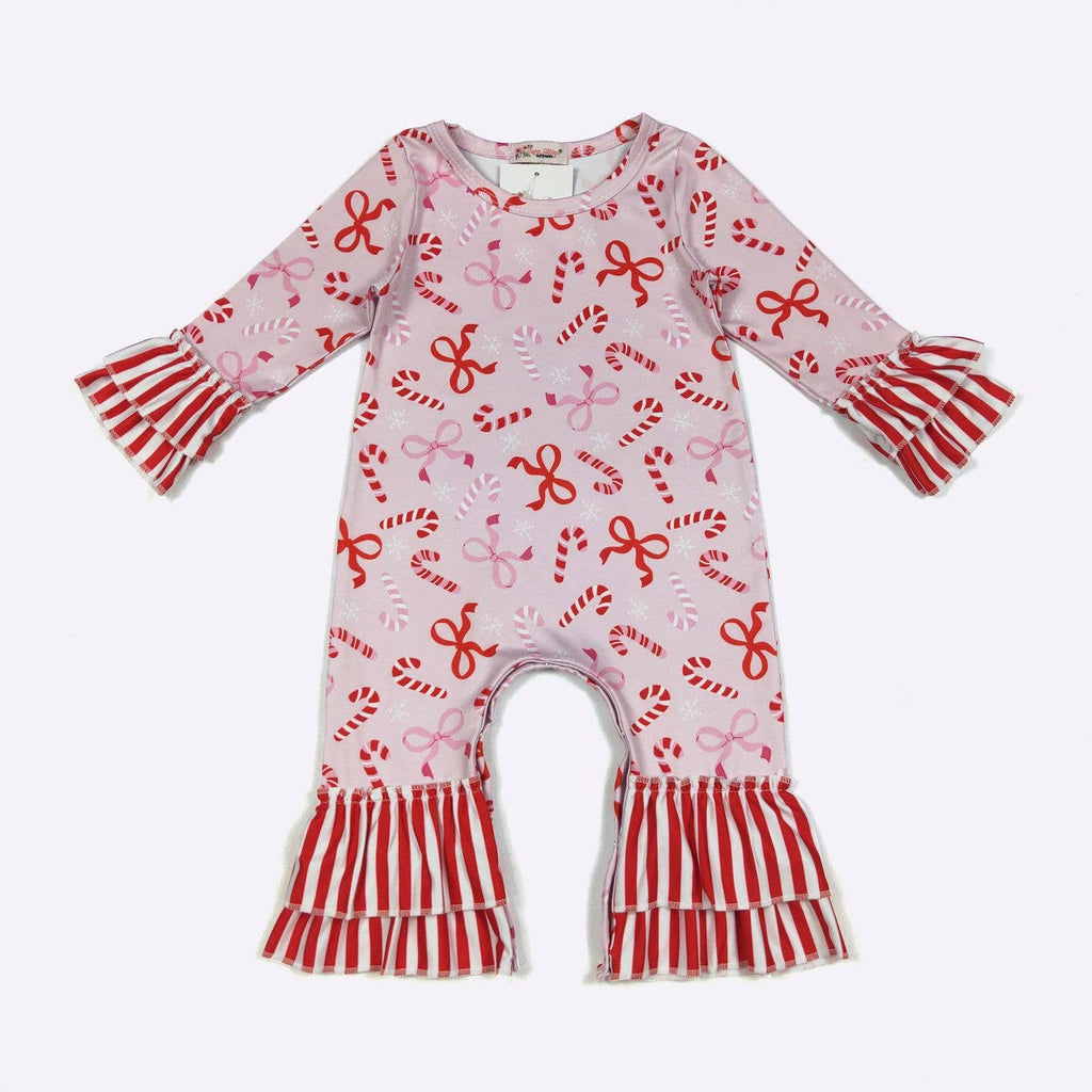 Candy Cane Bows Baby Romper