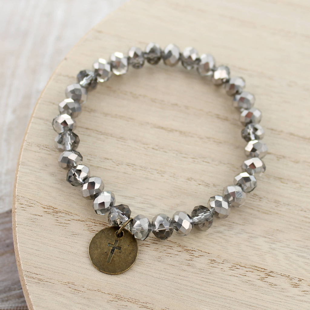Cz Pave Cross Charm Beaded Cord Bracelet