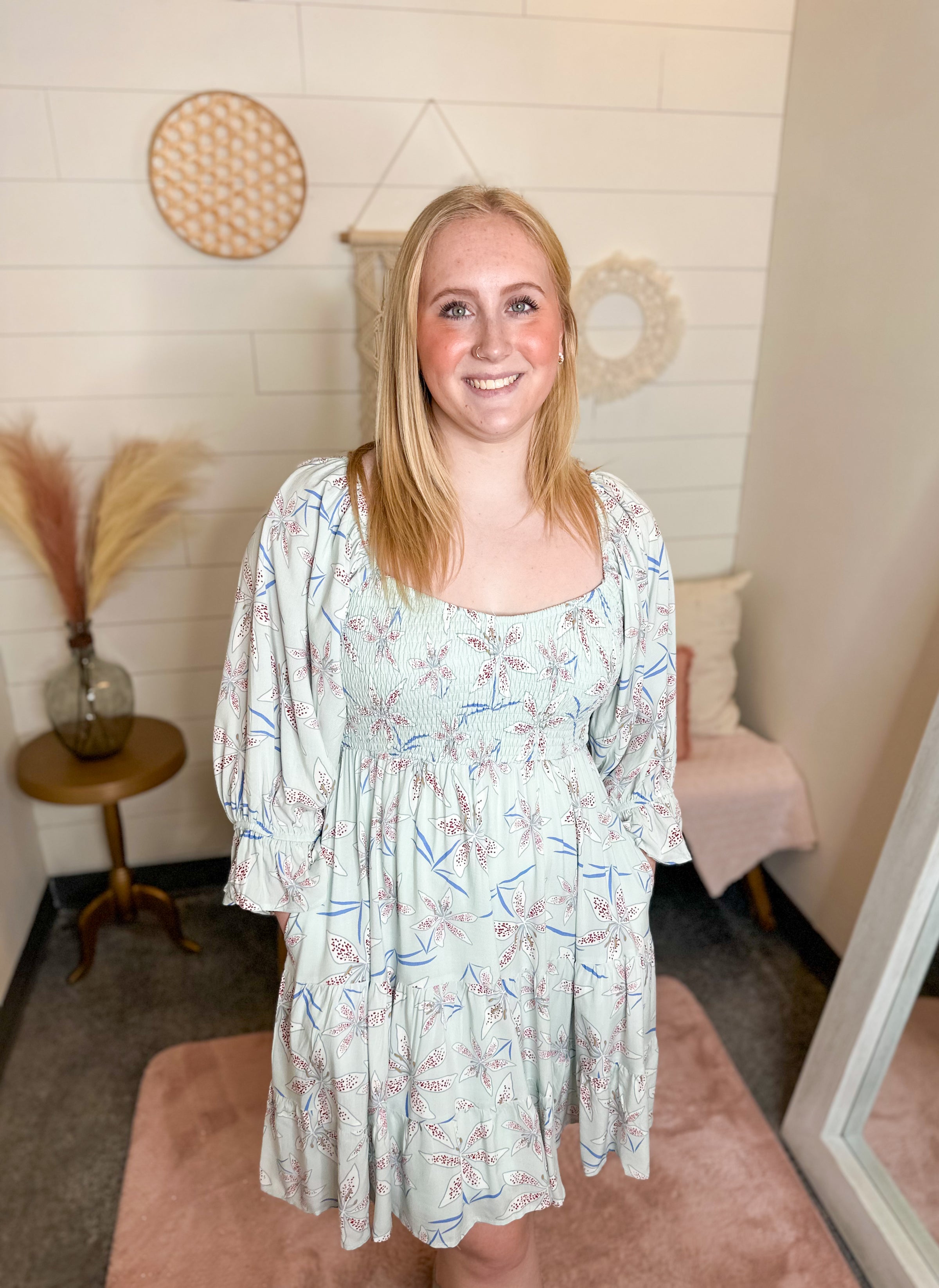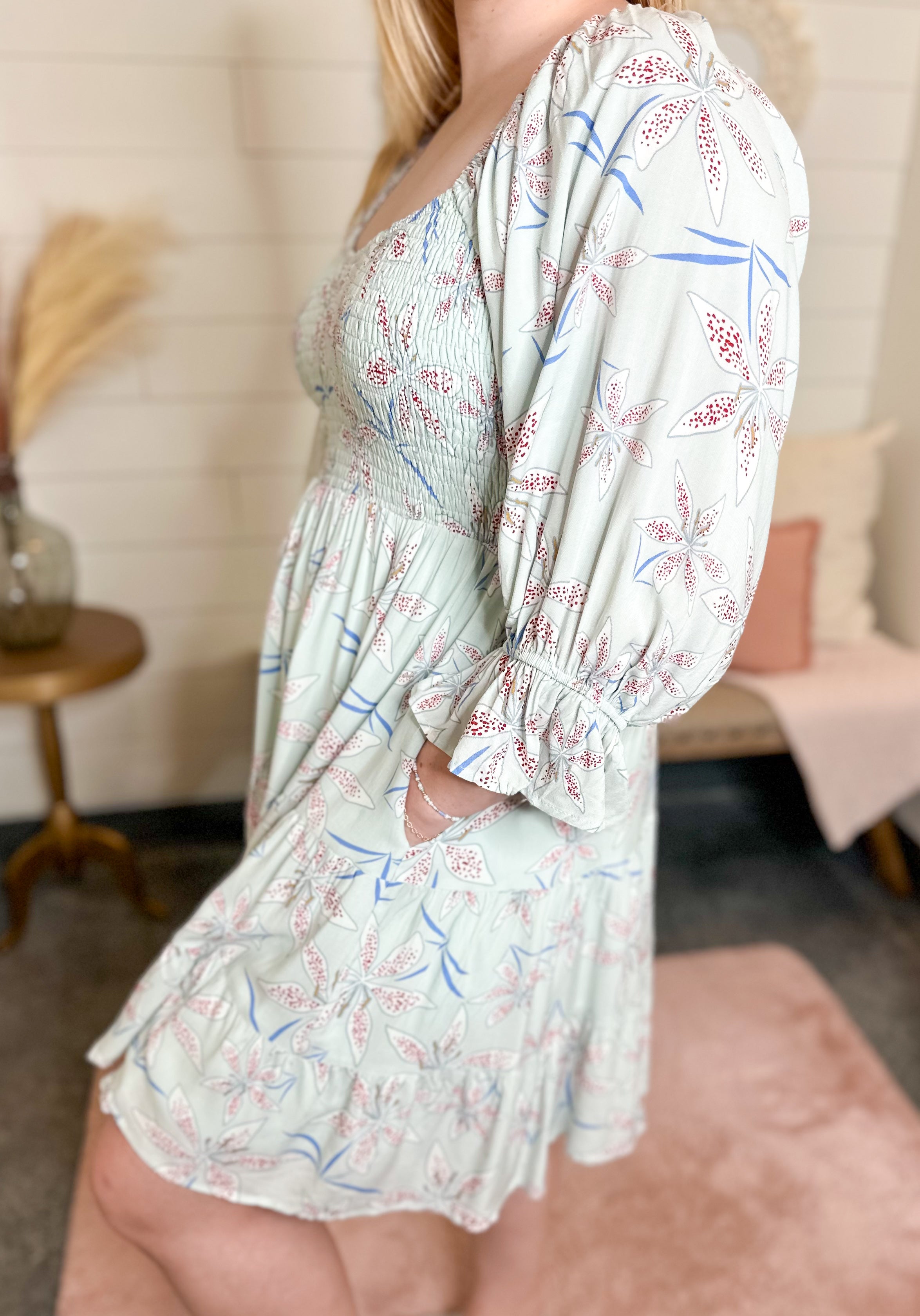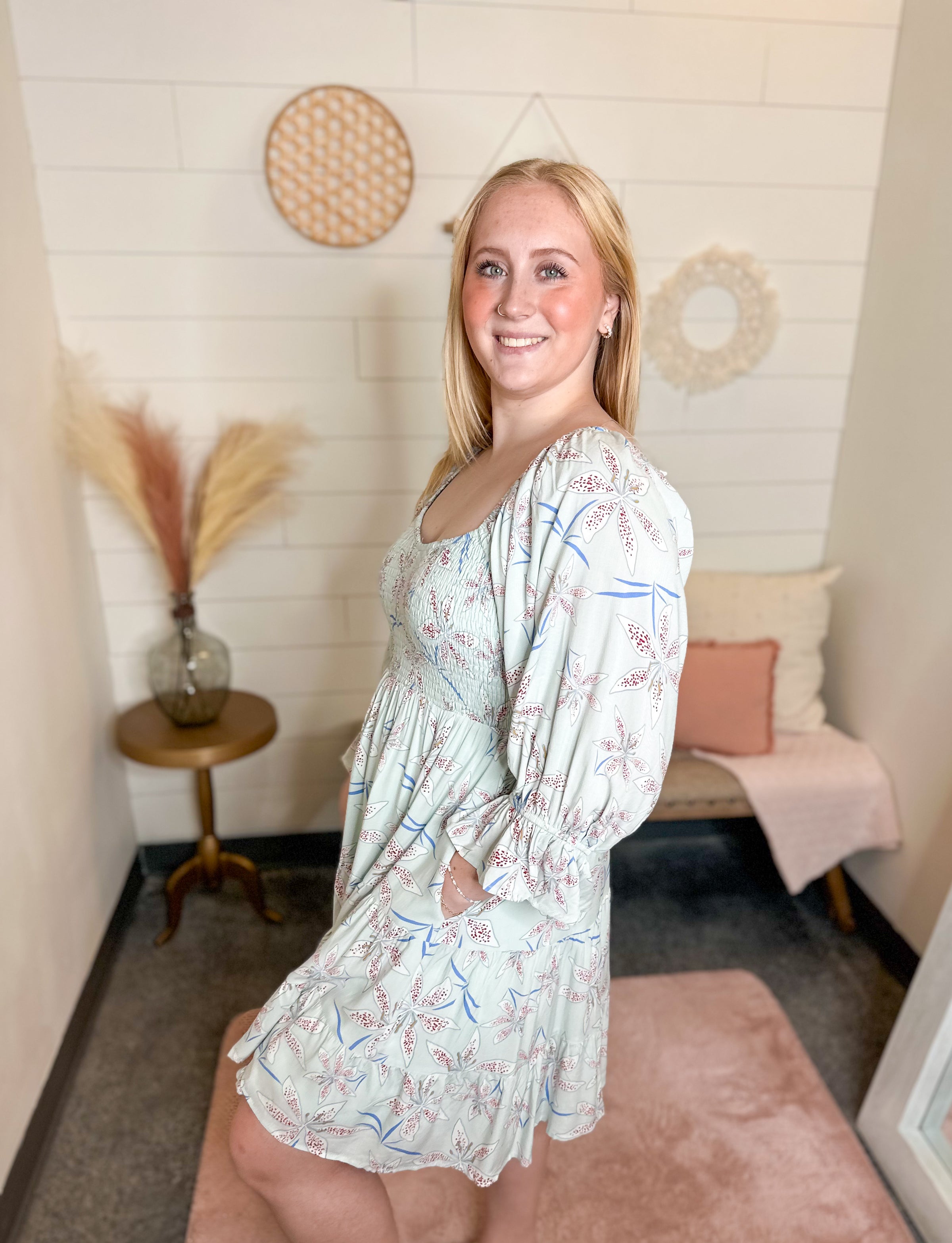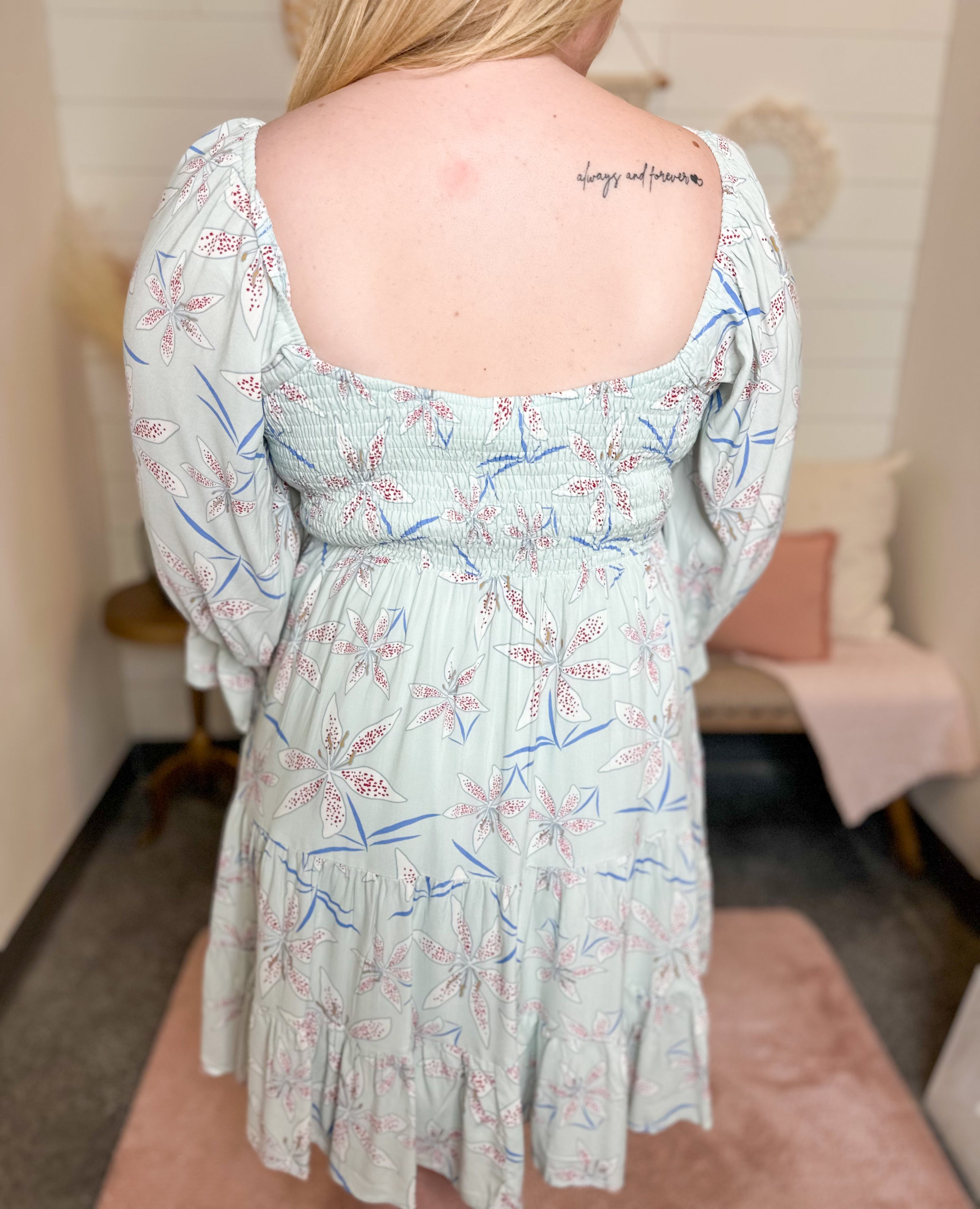 This dress features a soft floral pattern for a feminine and fresh look. A classic square neckline paired with a low back adds a hint of elegance and modernity. Convenient and discreet pockets for added functionality. Includes a soft lining for comfort and coverage.