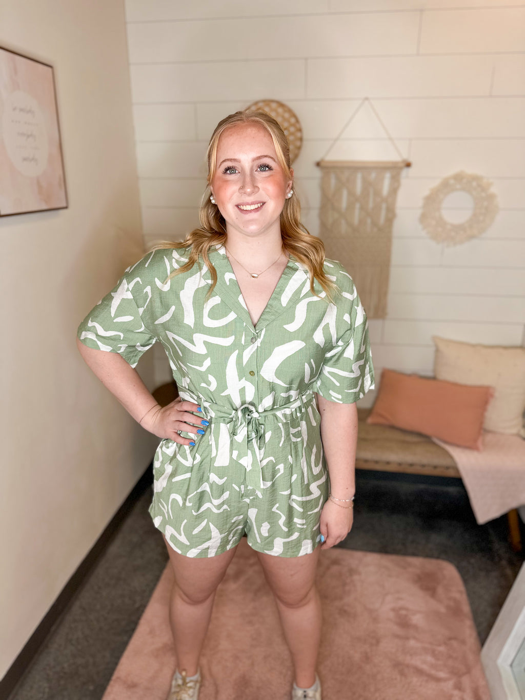 Abstract Button-Front Romper