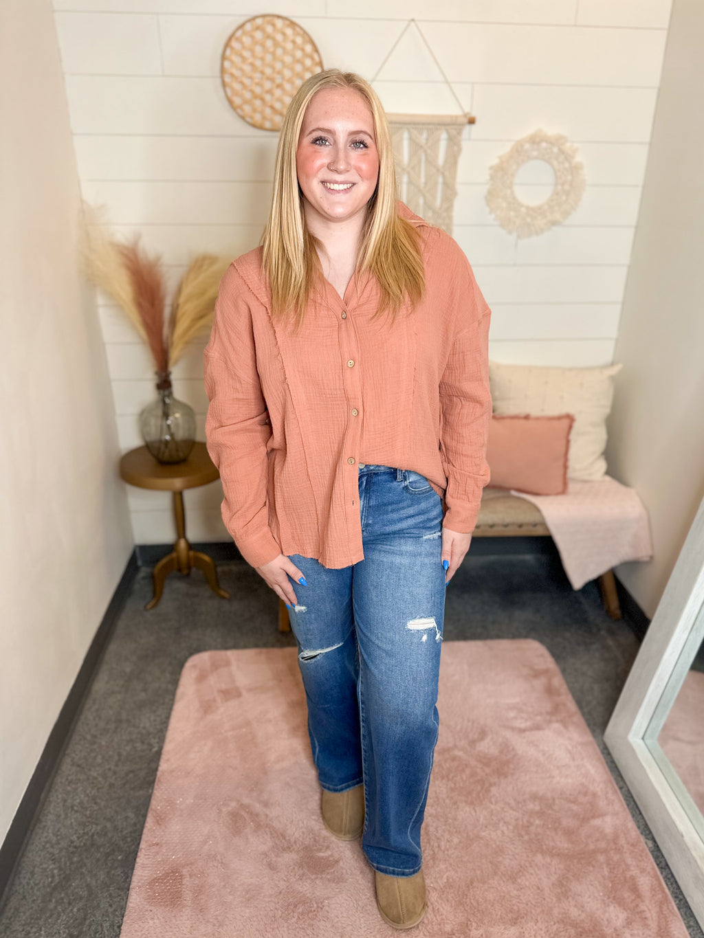 Our tops come in sizes small-3XL. We have sleeveless, short sleeve, 3/4 sleeves & long sleeves. We have cropped tops, layering tops, tunic tops and to the waist fitting tops. Some have flutter sleeves, balloon sleeves, button sleeves & flare sleeves.