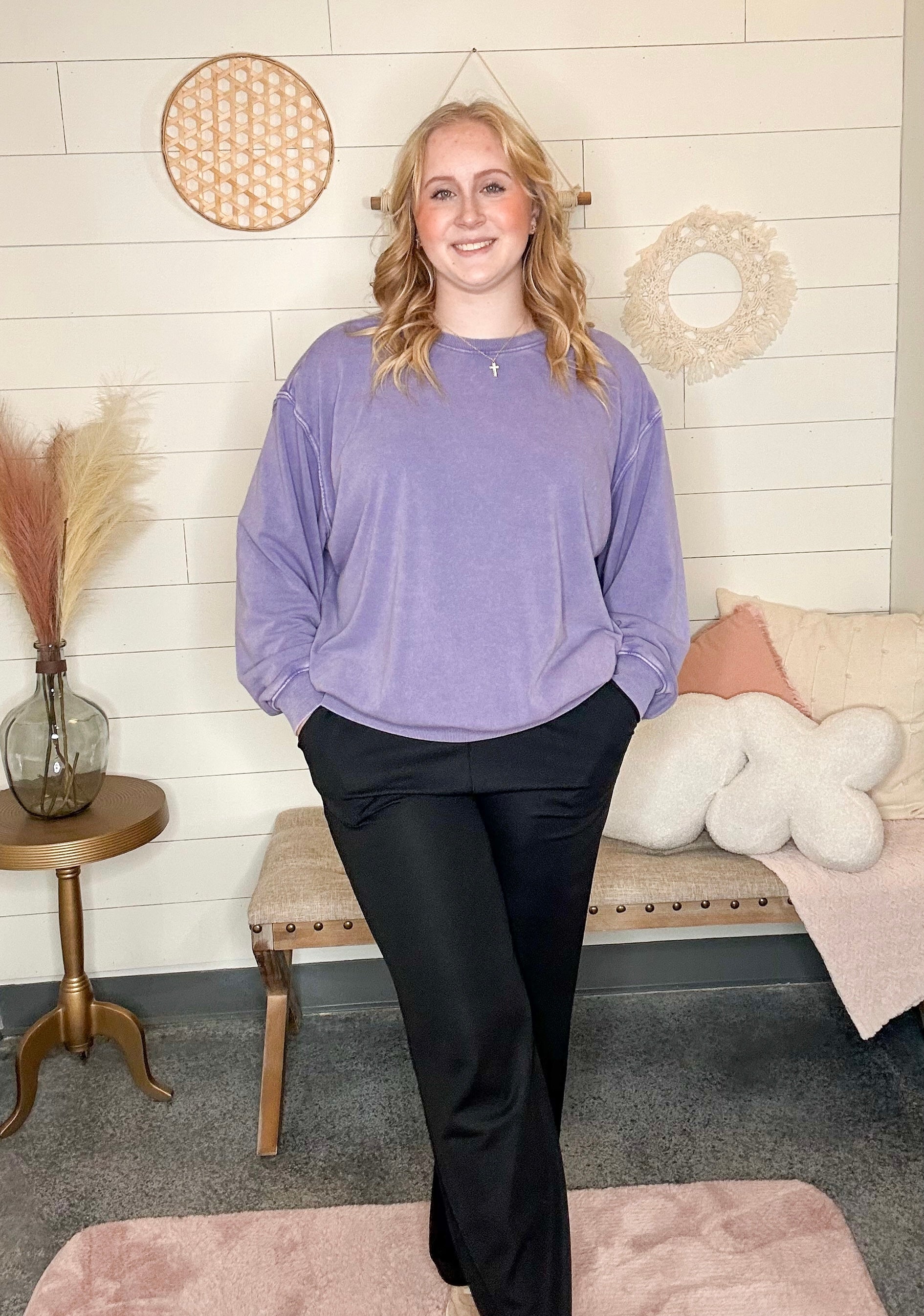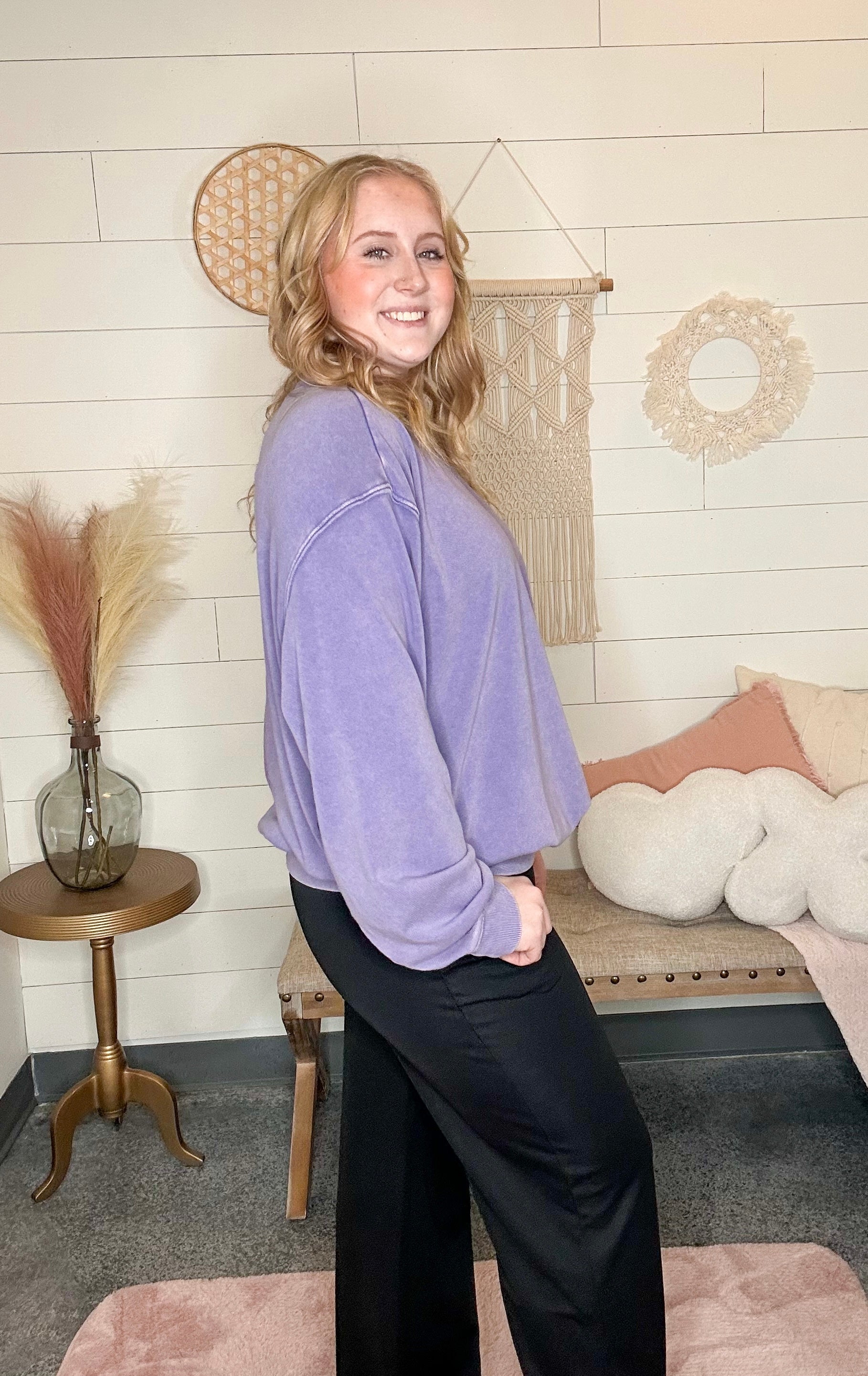 This essential sweatshirt offers ultimate comfort with soft French terry, featuring a mineral washed finish providing a faded, vintage texture. The design includes a ribbed crew neckline and dropped shoulders with full long sleeves and ribbed cuffs. With an oversized and relaxed fit, it pairs perfectly with joggers and sneakers for a laid-back look.