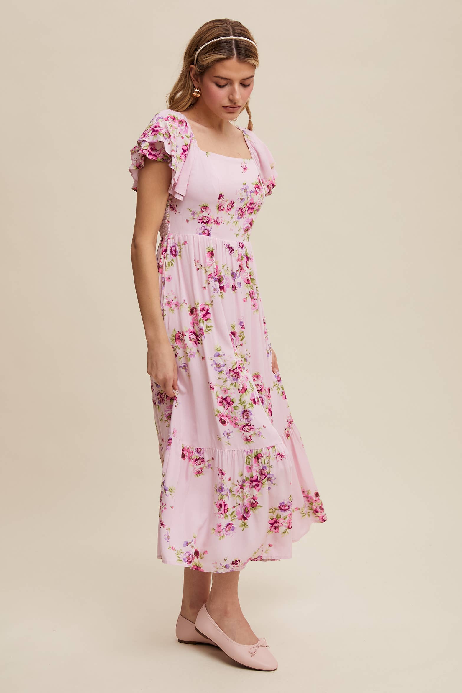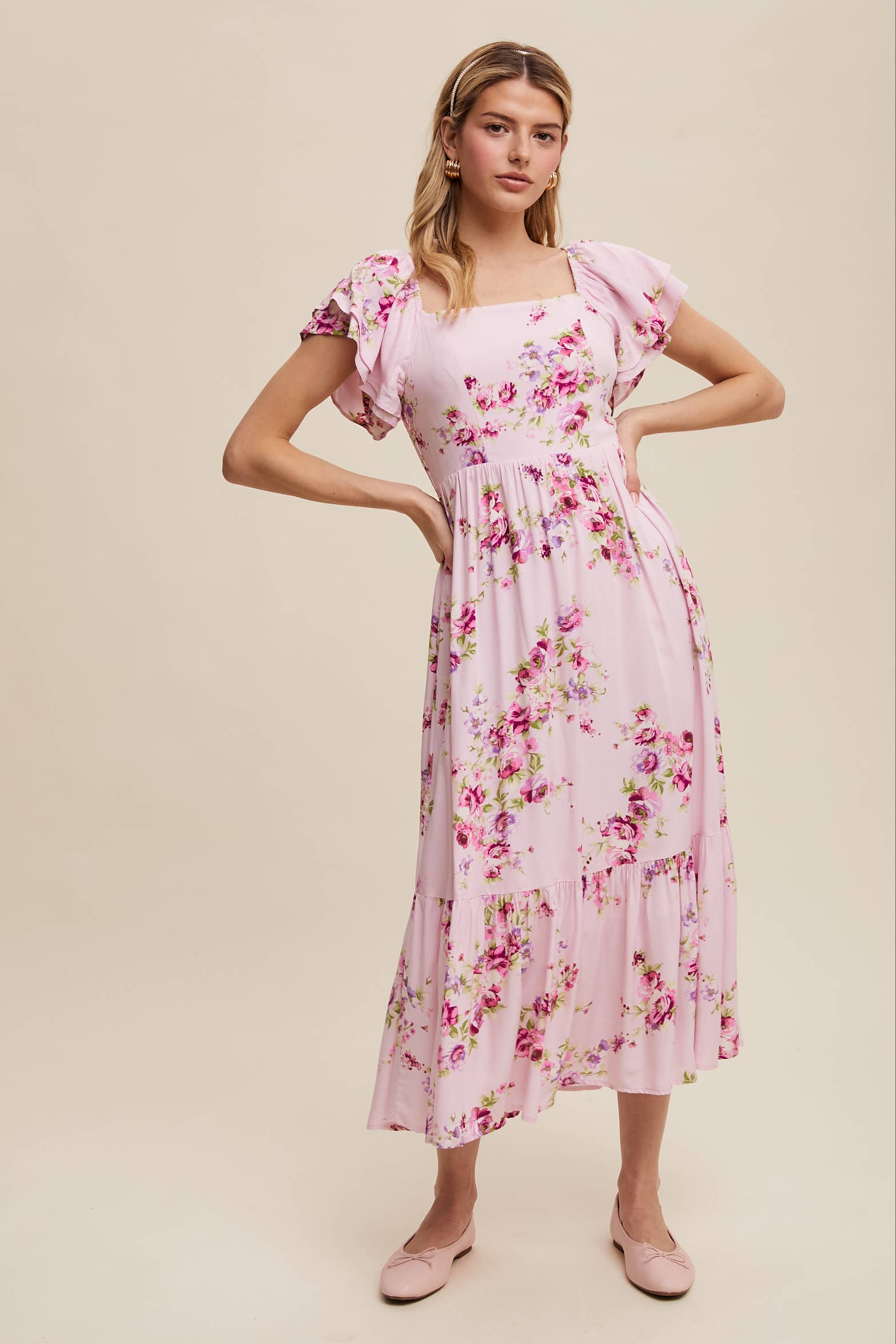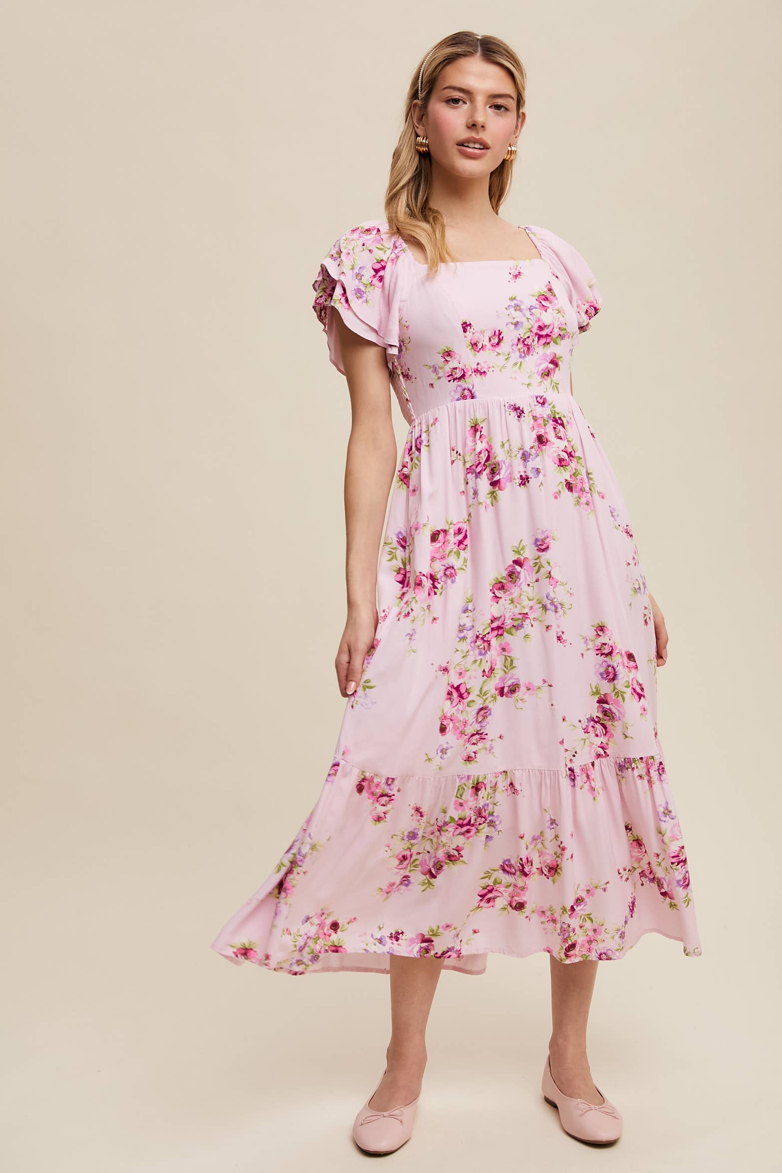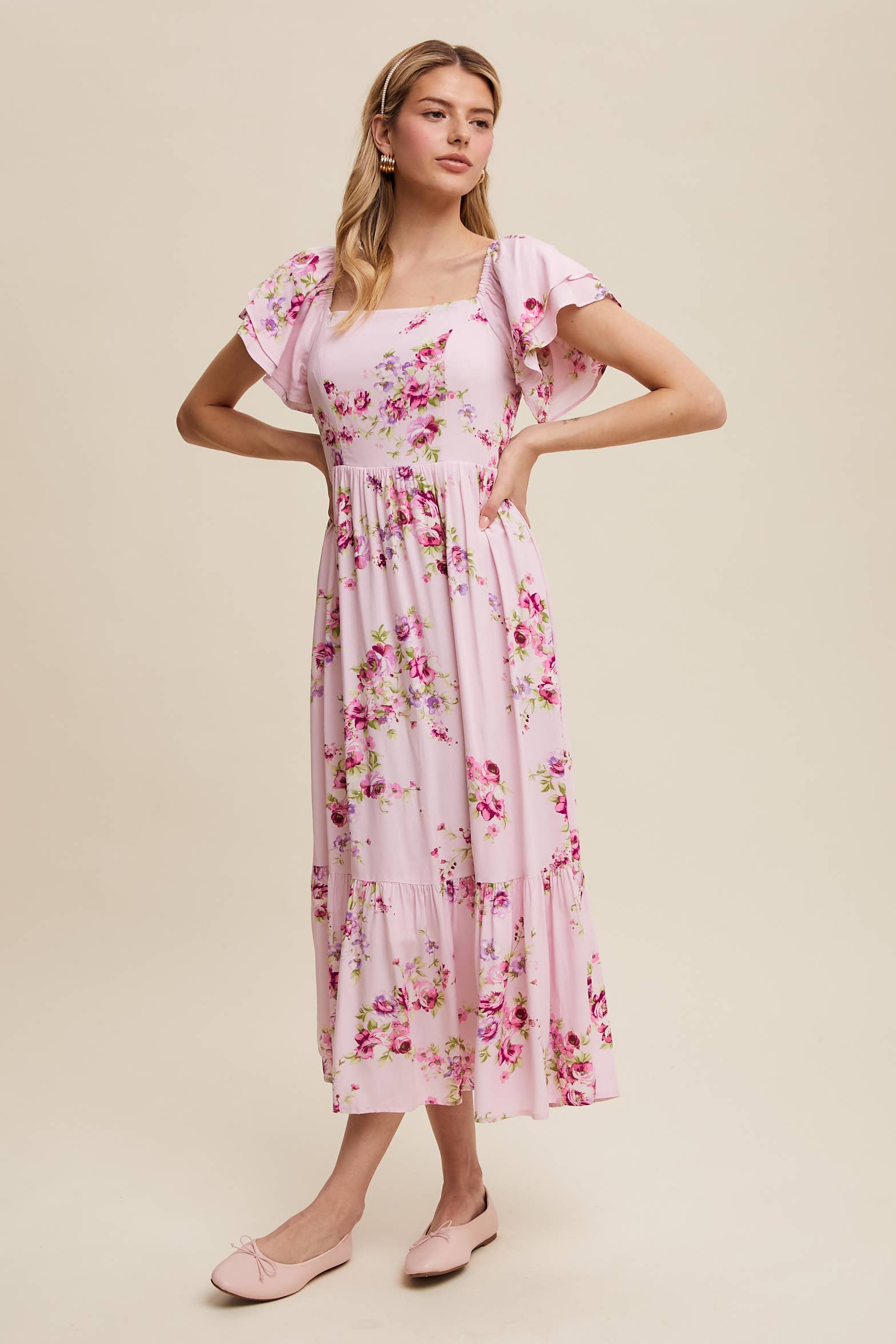 A dreamy floral maxi dress with romantic ruffle details and a breezy silhouette, perfect for warm-weather outings and special occasions. It is fully lined & has pockets.