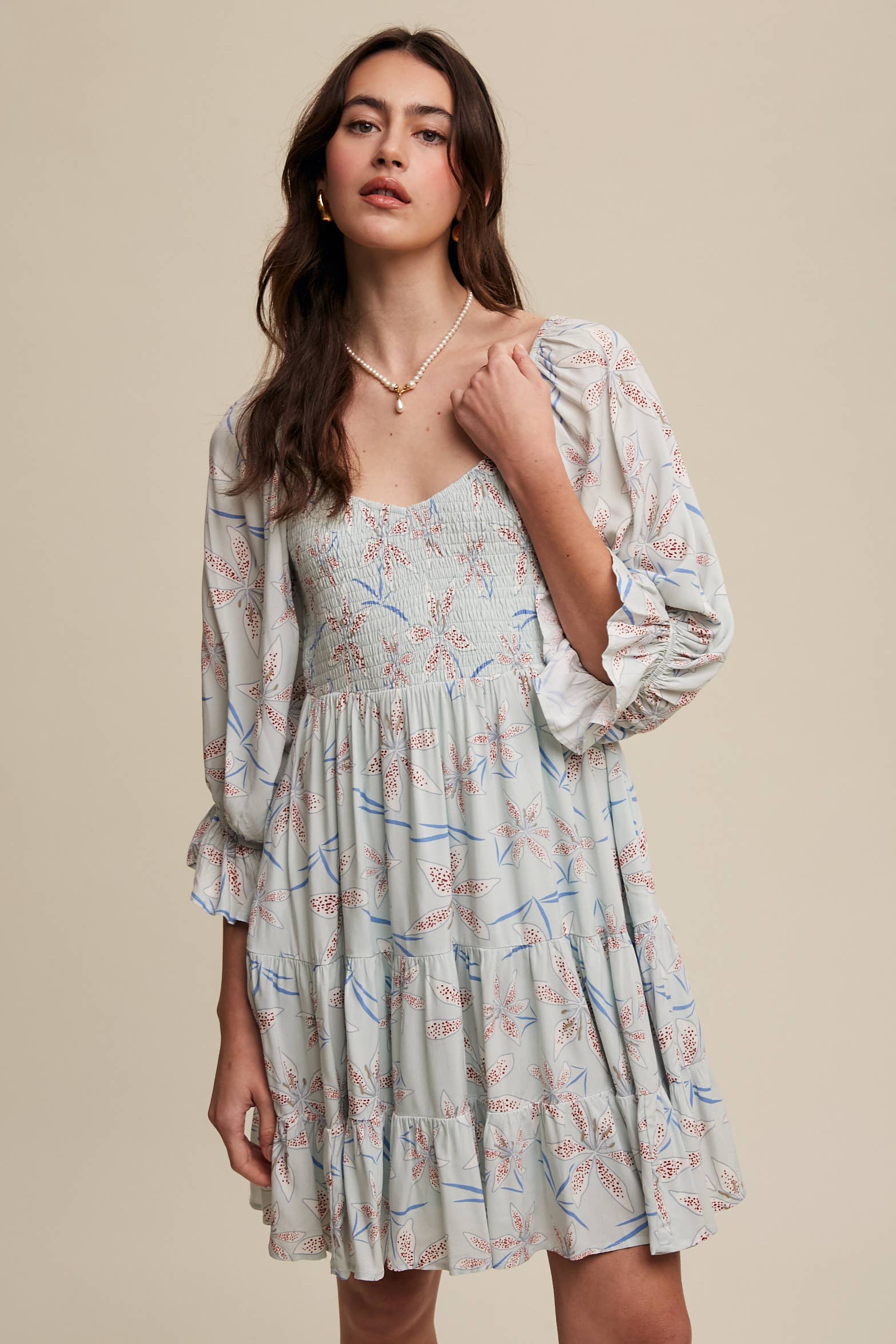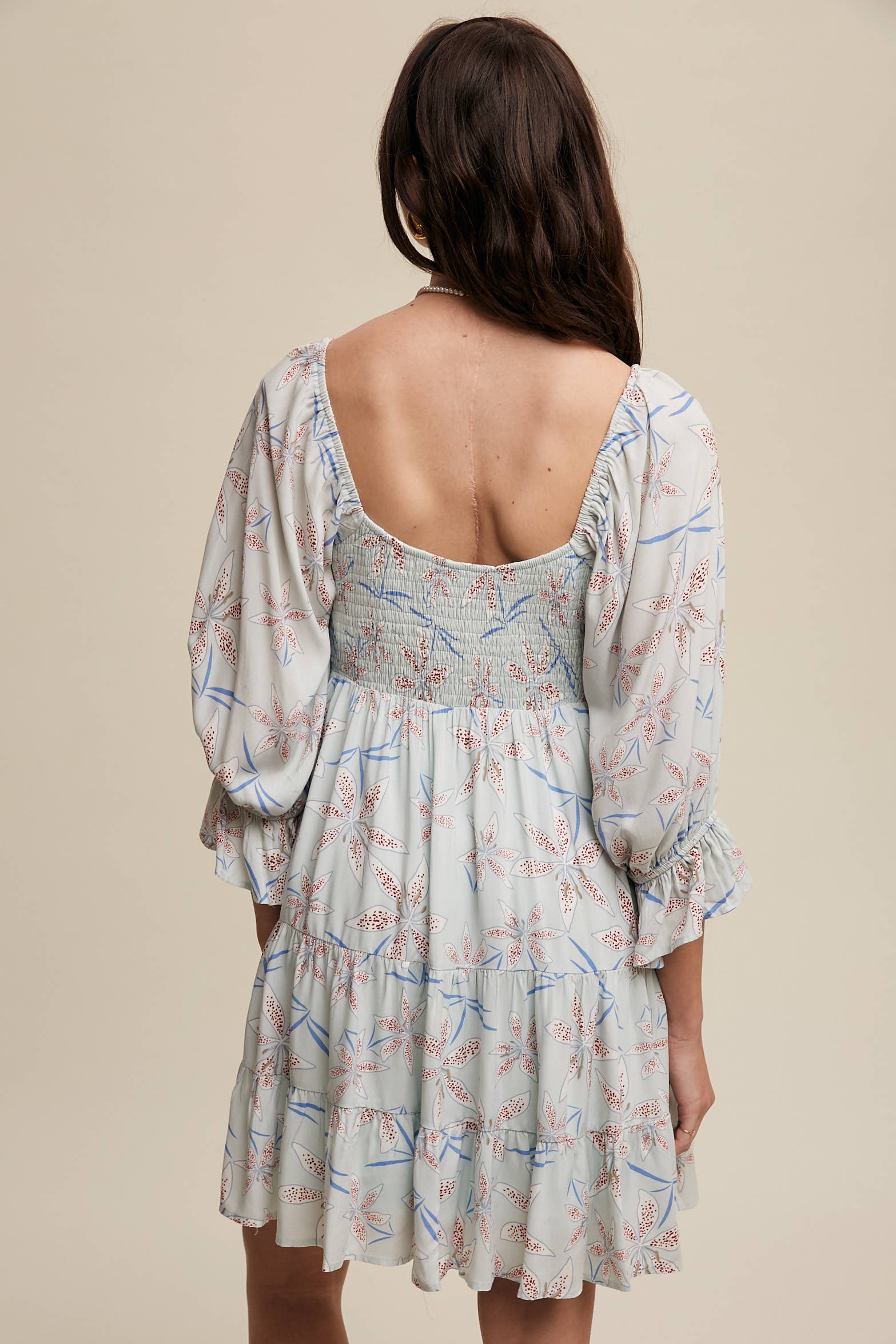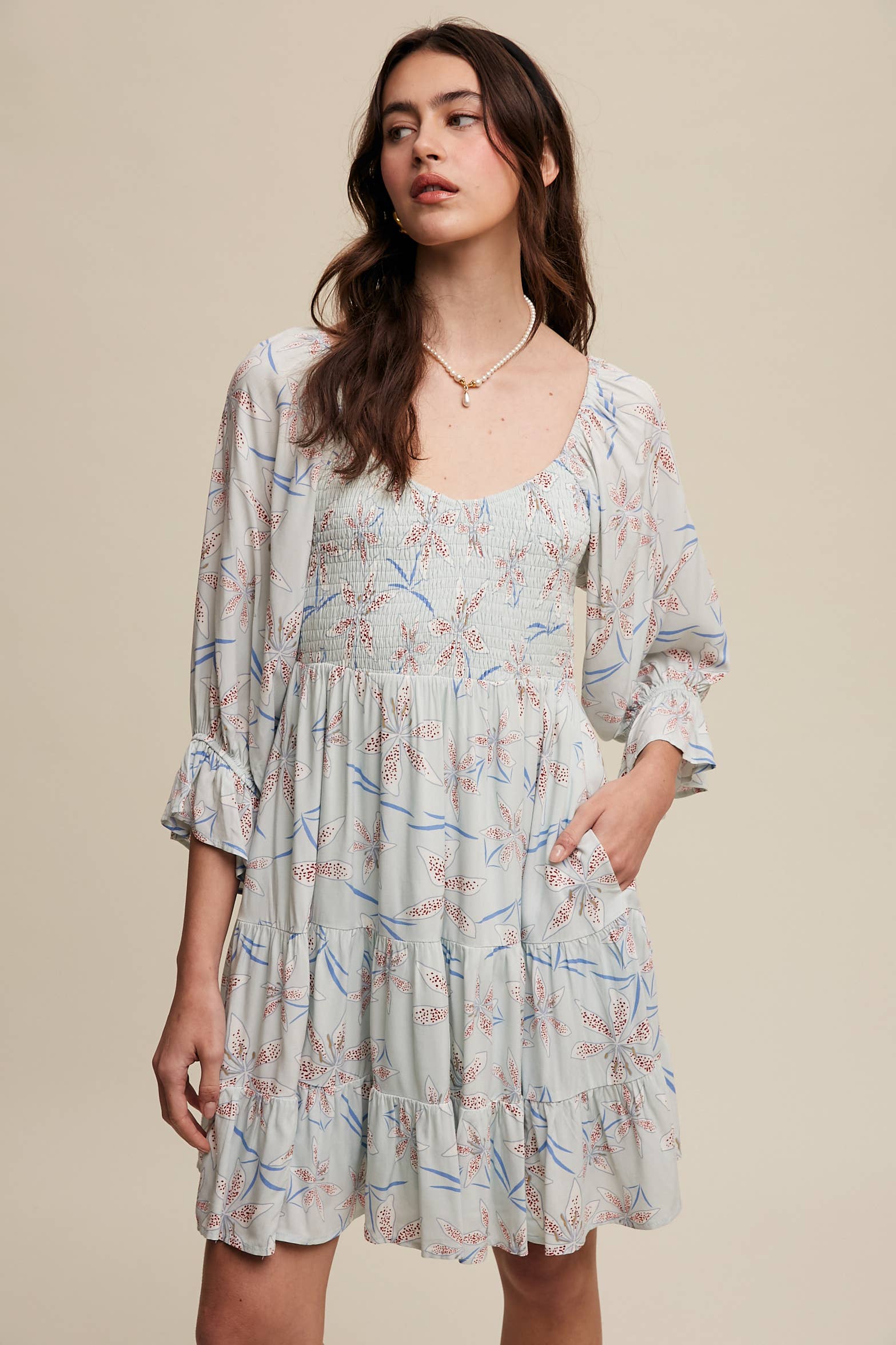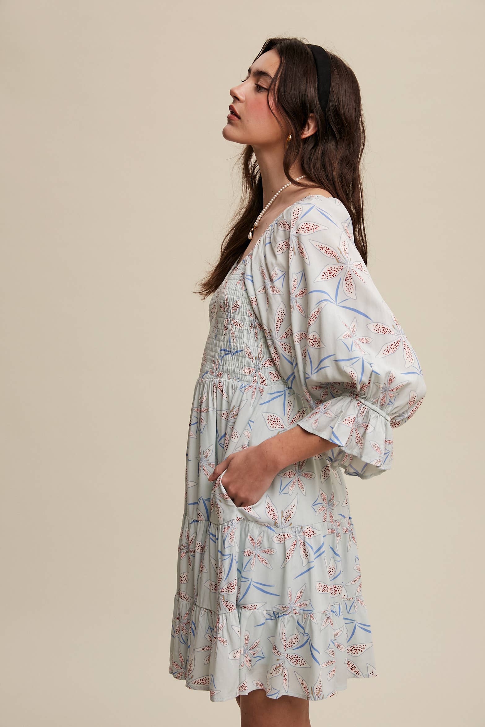This dress features a soft floral pattern for a feminine and fresh look. A classic square neckline paired with a low back adds a hint of elegance and modernity. Convenient and discreet pockets for added functionality. Includes a soft lining for comfort and coverage.