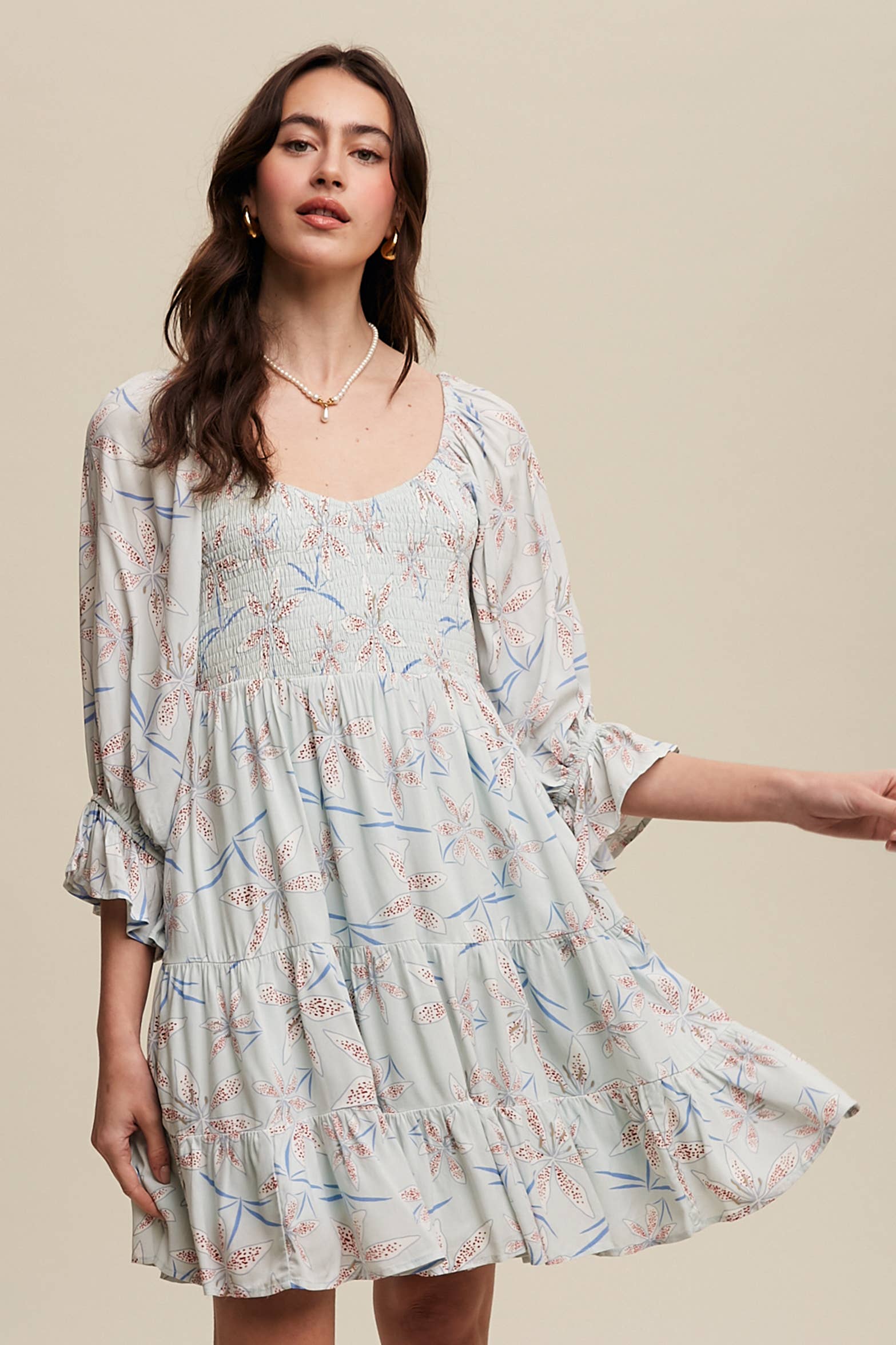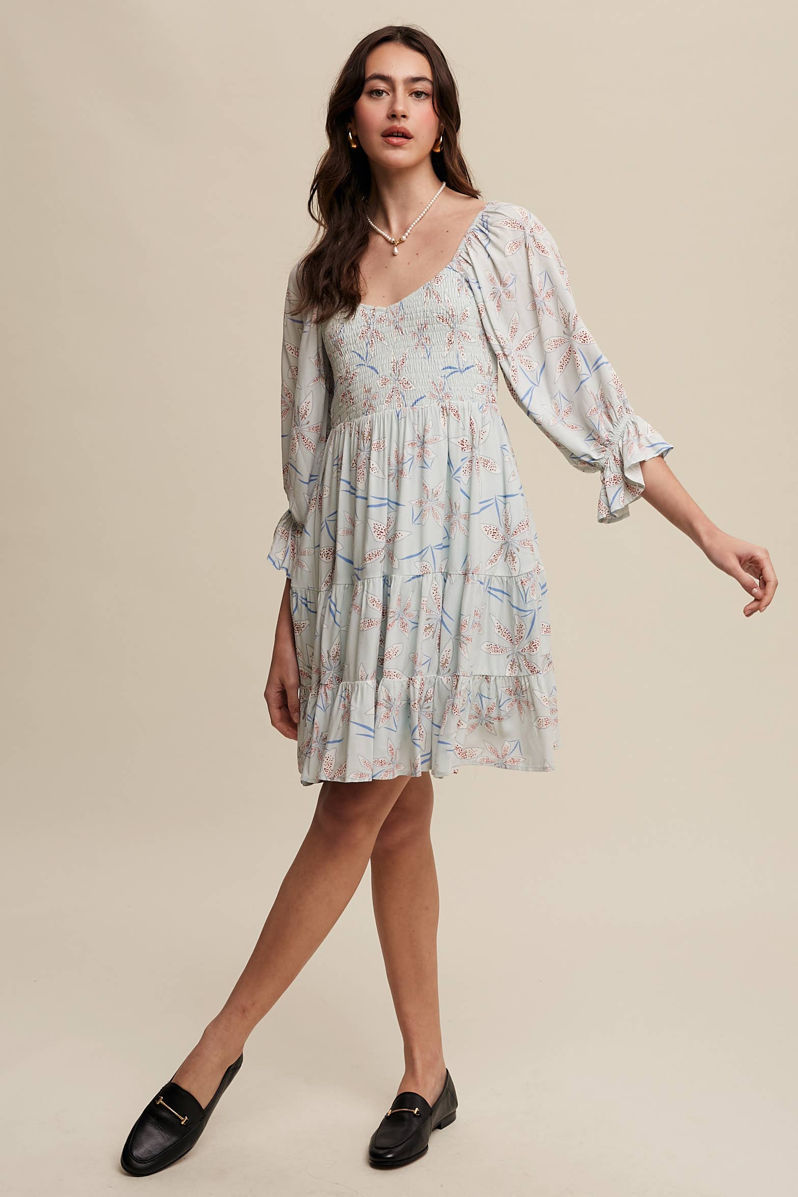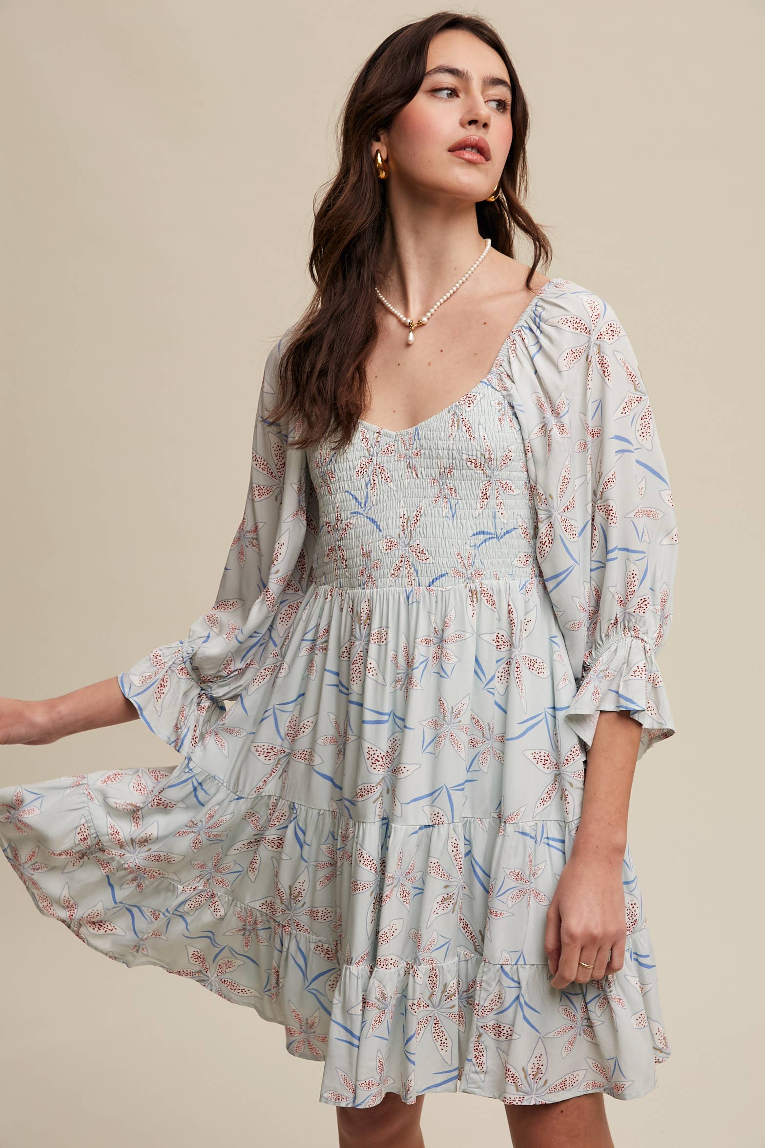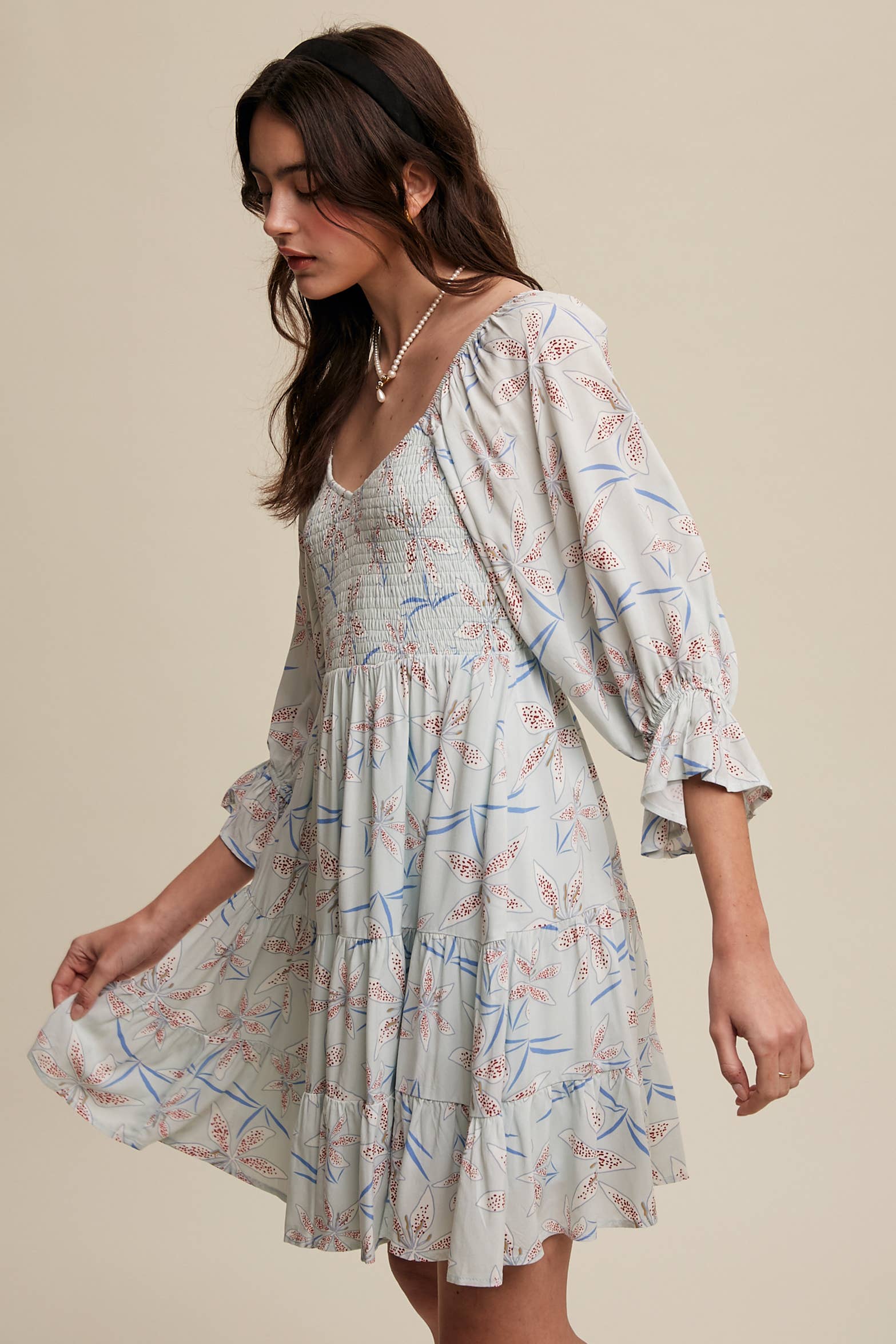 This dress features a soft floral pattern for a feminine and fresh look. A classic square neckline paired with a low back adds a hint of elegance and modernity. Convenient and discreet pockets for added functionality. Includes a soft lining for comfort and coverage.