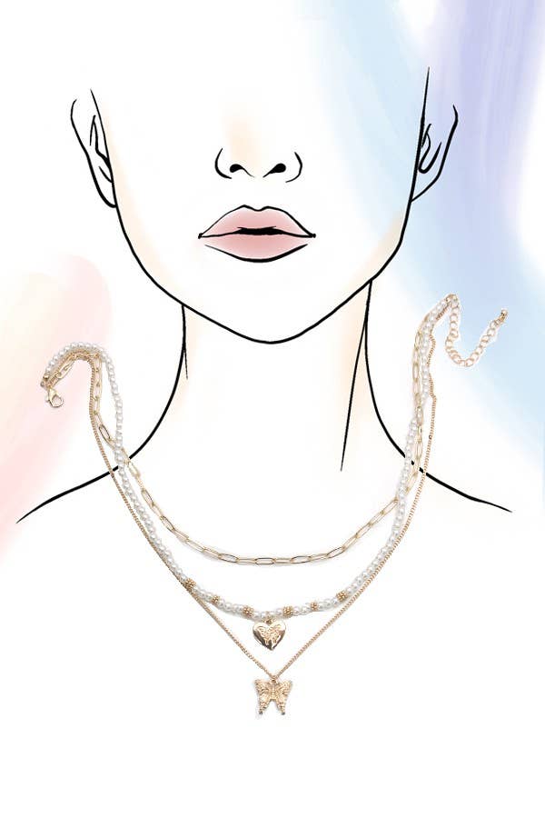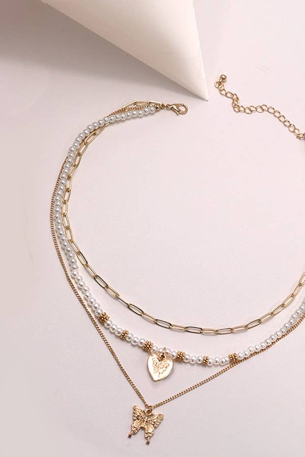 MULTI LAYER BUTTERFLY PEARL NECKLACE